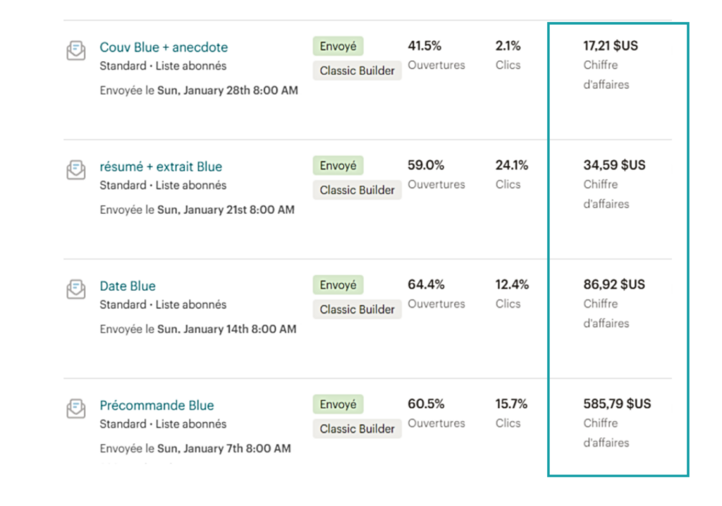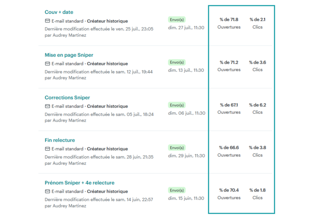 Ma newsletter d’autrice a un taux d’ouverture d’environ 60-70%, ce qui est bien au-dessus du marché. On considère qu’un bon taux est de 40%, mais la plupart des newsletters sont bien en-deçà (souvent autour des 20%). Depuis deux ans, j’ai réellement trouvé comment communiquer via ce canal et ça a changé beaucoup de choses, que ce soit en termes de connexion avec mes lectrices ou de revenus en direct via ma boutique.