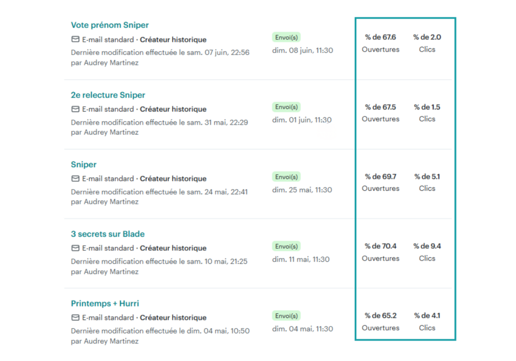 J’ai créé ma première liste email, il y a 7 ans, et la seconde, il y a 5 ans. C’est un canal que j’ai beaucoup travaillé et développé pour trouver ce qui marche. C’est devenu une véritable safe place, mon canal de prédilection, et je mets mon expérience et mes connaissances à ton service.